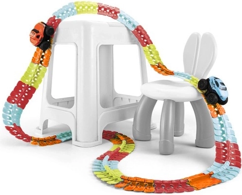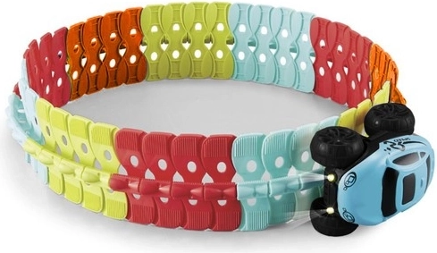 Deze flexibele racebaan biedt kinderen uren speelplezier. De delen kun je eenvoudig verbinden, draaien en ombouwen, zodat je steeds weer een nieuw en origineel parcours creëert. Dankzij de geleiding in de baan kan het autootje loopings, spiralen, hellingen en scherpe bochten aan.