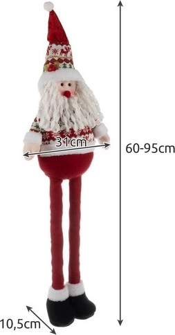 Schattige kerstkabouter Santa met telescopische benen die tot een hoogte van 95 cm reiken en een magische feestelijke sfeer in huis brengen. Hij heeft een vormbare muts met Noors patroon, zachte stoffen en stabiele schoentjes – de ideale decoratie bij de boom, op een commode of in de hal.