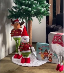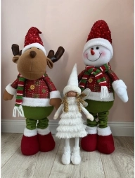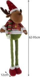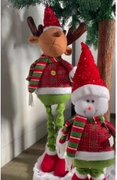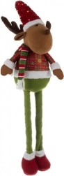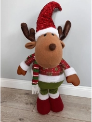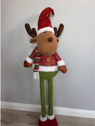 Het rendier heeft een verstelbare hoogte dankzij de telescopische poten en een vormbare muts, waardoor je het eenvoudig aan je decoratie kunt aanpassen. Bovendien wordt het vrolijke design verder verfraaid door een bontgekleurde jas en sjaal, wat bijdraagt aan de algehele kerstsfeer.