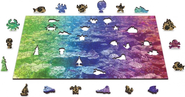 Leg de puzzel aan de hand van het kleurrijke koraalrifmotief of probeer de uitdaging van het leggen op vorm aan de achterkant met patroon.