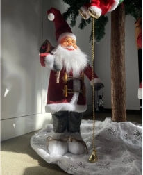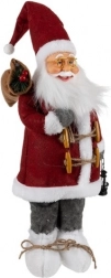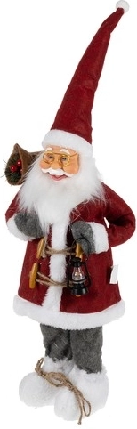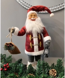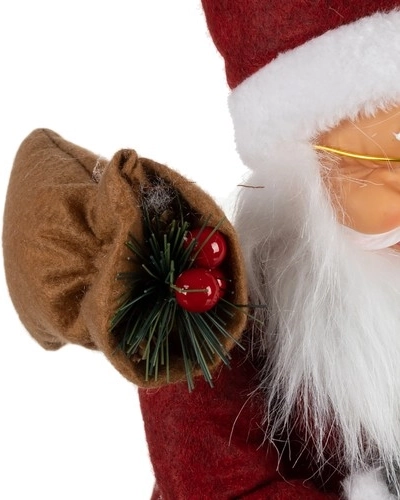 Deze rijk versierde kerstdecoratie van Sinterklaas valt meteen op. Een rode mantel met witte bontafwerking, een lange witte baard en een gouden bril zorgen voor de klassieke look die onlosmakelijk bij Kerst hoort. Sinterklaas draagt een lampion en heeft op zijn rug een zak vol cadeaus, waardoor de feestelijke sfeer direct aanwezig is.