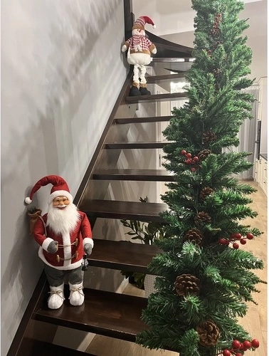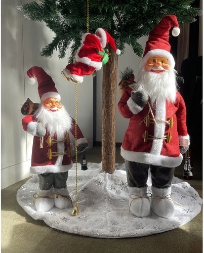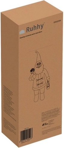 Dankzij de hoogte van 60 cm valt hij prachtig op en blijft hij toch praktisch te plaatsen, ook in kleinere ruimtes. Het gedetailleerde gezicht, de donzige baard en accessoires zoals een lantaarn en een zakje met takjes benadrukken de realistische en elegante uitvoering.