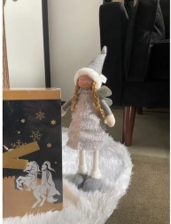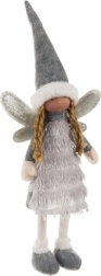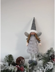 Dit elegante kerstfiguurtje van een fee/engel in grijs, wit en zilver brengt een knusse winterse sfeer in huis. Glinsterende vleugels en zachte stoffen creëren een gevoel van magie en vreugde dat zo typisch is voor de feestdagen.