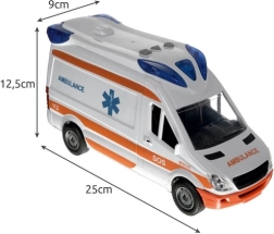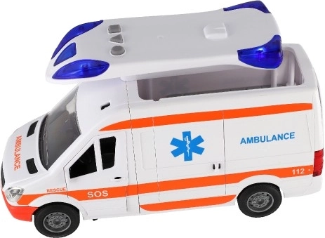 Drie knoppen op het dak activeren opvallende licht- en geluidseffecten die een echte ambulance natuurgetrouw nabootsen. Batterijen 2× AA zijn inbegrepen.