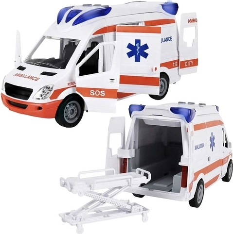 Deze kunststof ambulance bootst een echt reddingsvoertuig natuurgetrouw na – van de bedrukking tot de functies. Kinderen zullen genieten van drie knoppen op het dak voor het activeren van lichten en sirenes, terwijl de openslaande voor-, zij- en achterdeuren toegang geven tot het gedetailleerde interieur. Er is een opvouwbare en uitschuifbare ligbrancard meegeleverd, waarmee de patiënt makkelijk in de wagen kan worden “geladen”.
