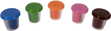 Vijf potjes met verschillende kleuren bieden volop mogelijkheden. De kleuren kunnen met elkaar gemengd worden om nieuwe, originele tinten te creëren.
