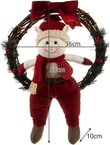 Stijlvolle kerstkrans met een figuurtje van een elf die gastvrijheid en een feestelijke sfeer in je huis brengt. De combinatie van natuurlijke takjes, bessen en textiele decoraties in de traditionele kleuren rood, wit en groen zorgt ervoor dat hij gemakkelijk te combineren is met andere versieringen. Ideaal voor deuren, muren en ook als cadeau.