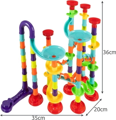 Bouw je eigen 3D knikkerbaan met tot wel 113 onderdelen en laat 30 knikkers racen over kleurrijke glijbanen, trechters en hellingen. De onderdelen verbinden gemakkelijk en intuïtief, zodat kinderen snel routes kunnen aanpassen en hun creativiteit, ruimtelijk inzicht en fijne motoriek ontwikkelen.