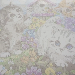 De genummerde vakjes op het canvas komen overeen met de potjes verf. Penselen in verschillende maten helpen je zelfs de fijne details van bloemen en kittens uit te werken.