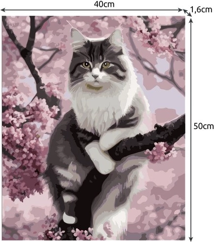 Ontdek de vreugde van creatieve ontspanning met deze set voor schilderen op nummer in het formaat 40 × 50 cm. De complete set met een canvas op houten frame, acrylverf en penselen stelt je in staat een indrukwekkend schilderij van een schattig katje te maken, zelfs als je net begint. Eenvoudige techniek, geweldige manier om te ontspannen en een voltooid werk dat klaar is om op te hangen.