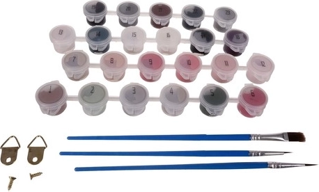 De set is compleet en klaar om te schilderen: het doek is al opgespannen op een houten frame, in de verpakking zitten 3 penselen voor verschillende details, ophanghaakjes en schroeven en ook spoorloze haakjes. Ideaal als cadeau voor creatieve zielen of als gezamenlijke activiteit met dierbaren.