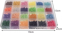 De creatieve set waterparels biedt uren speelplezier voor kinderen en ouders. In de doos vind je 2800 parels in 24 heldere kleuren, twee sjablonen (vierkant en zeshoek), 8 kaarten met voorbeelden en praktische tools inclusief een sprayflesje. De gemaakte motieven hoef je na het leggen op de sjabloon slechts licht met water te besproeien en na het drogen blijven ze stevig – zonder strijken.