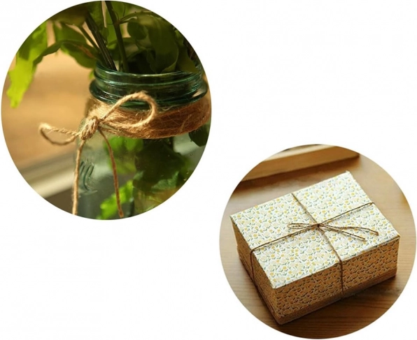 Jutetouw van natuurlijke textielvezels is een uitstekende keuze voor duurzame verpakking, het aanbinden van planten, doe-het-zelfdecoraties en alledaagse klusjes in huis. Dankzij de sterkte en elasticiteit blijven knopen goed zitten en is het tegelijk zacht voor planten en oppervlakken.