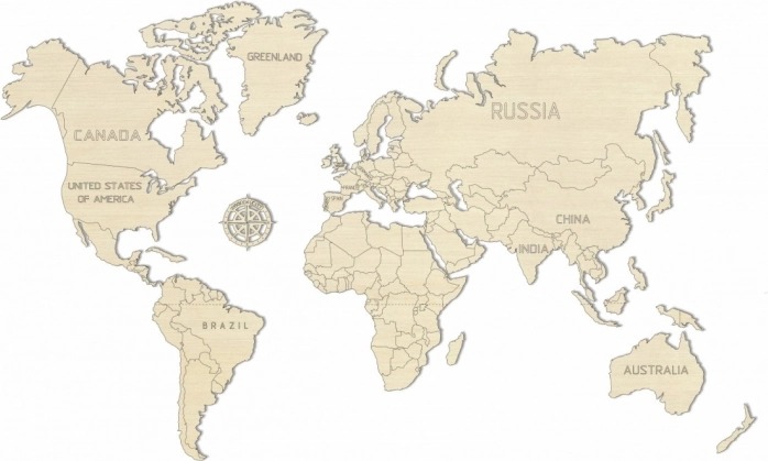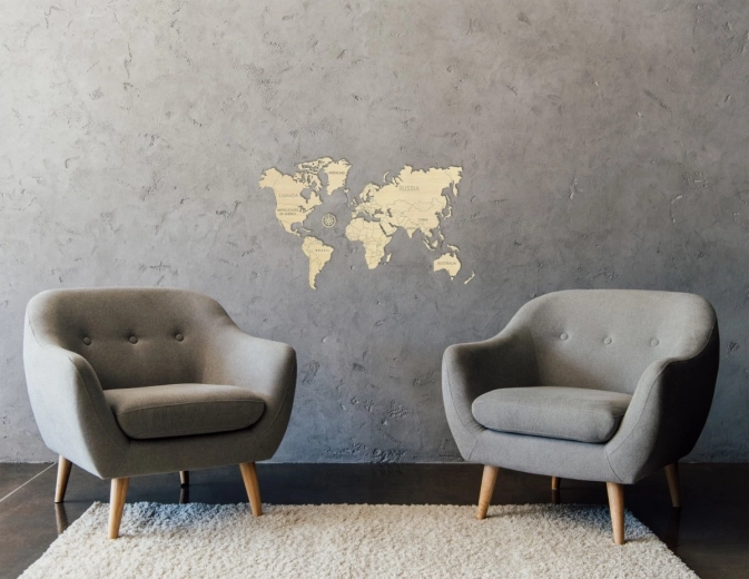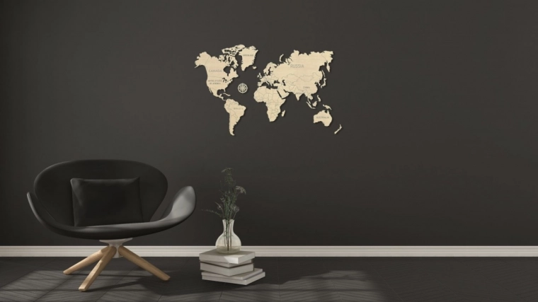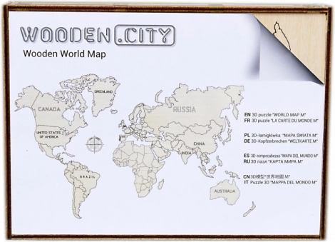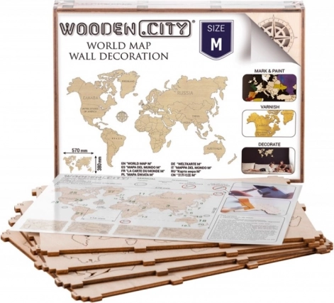 Een stijlvolle houten wereldkaart voor aan de muur in maat M van het merk WOODEN CITY, ideaal als designdecoratie en origineel cadeau voor liefhebbers van reizen. Gemaakt van hoogwaardige berkenmultiplex, precies laser-gesneden, eenvoudig te bevestigen met dubbelzijdige tape en verandert je huis of kantoor in een wereld vol herinneringen.