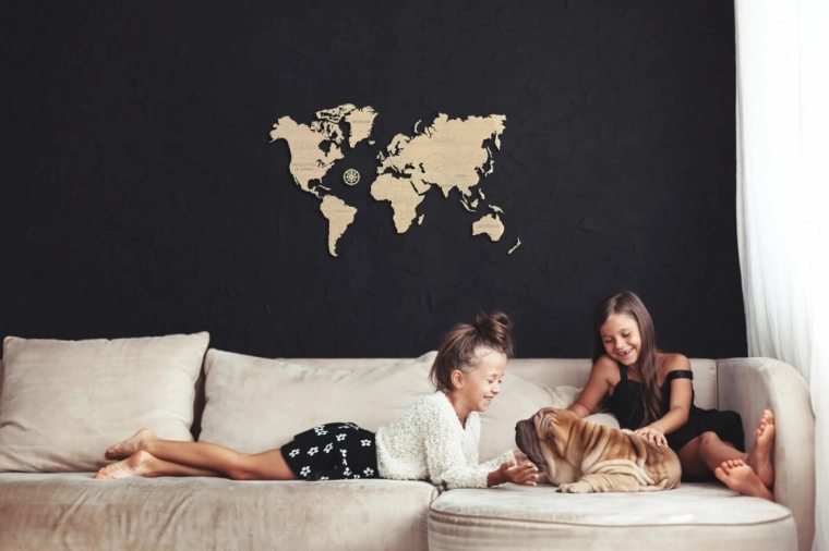 De kaart dient als stijlvolle wanddecoratie en helpt zowel kinderen als volwassenen beter oriënteren in de wereldgeografie.