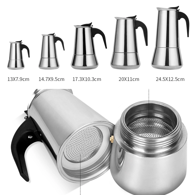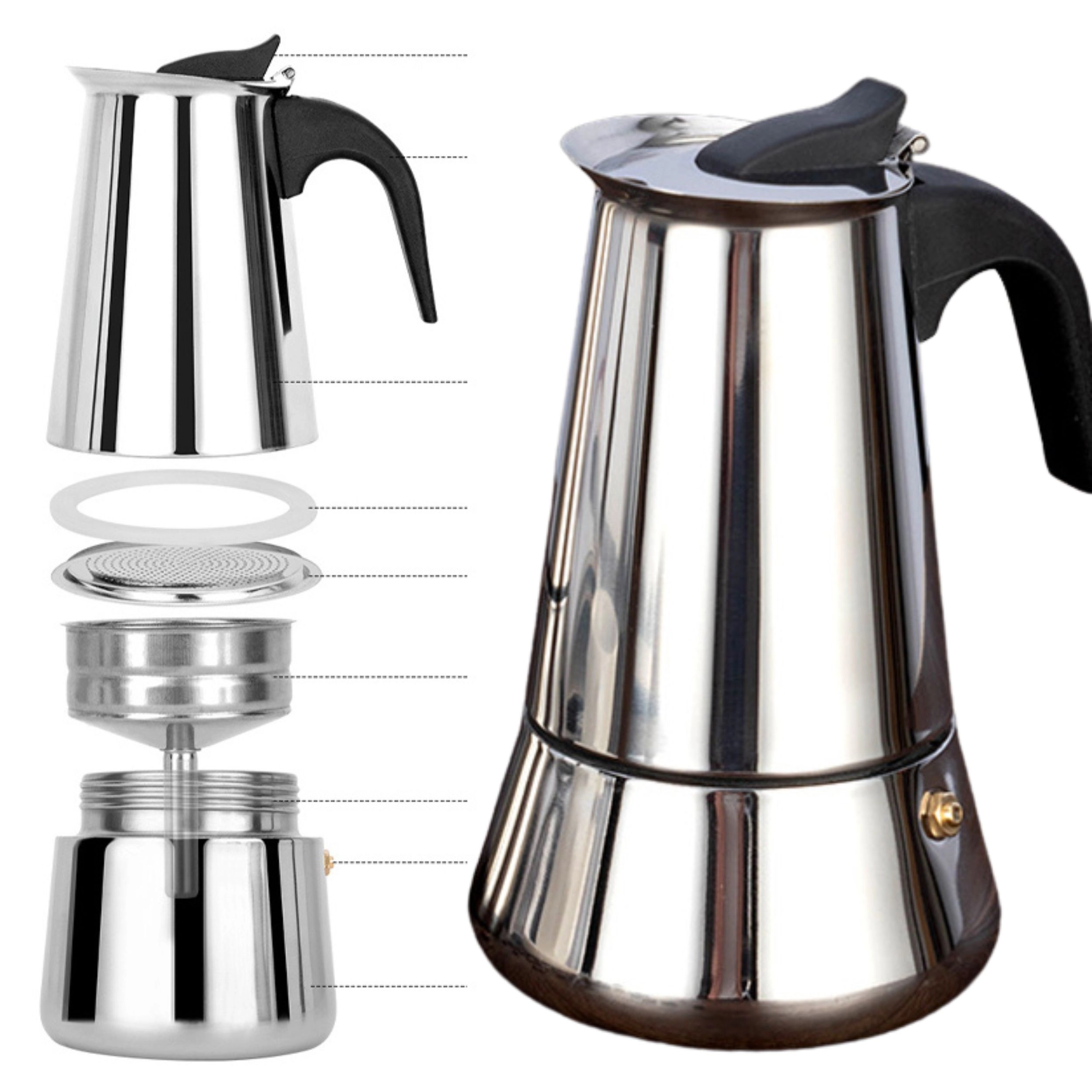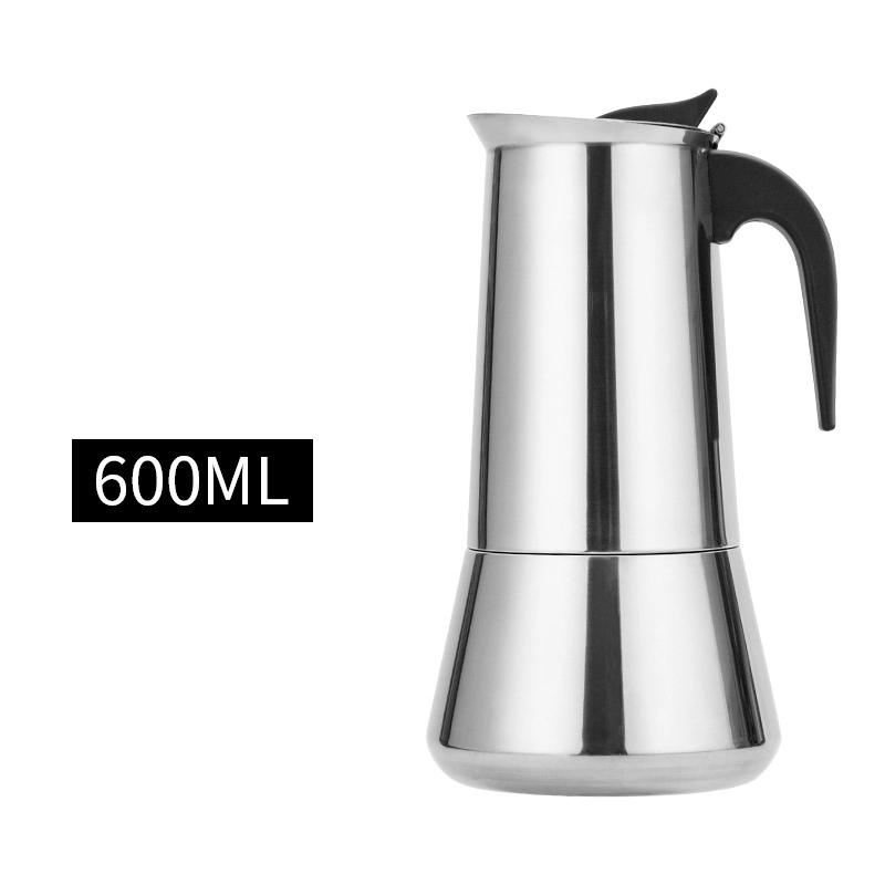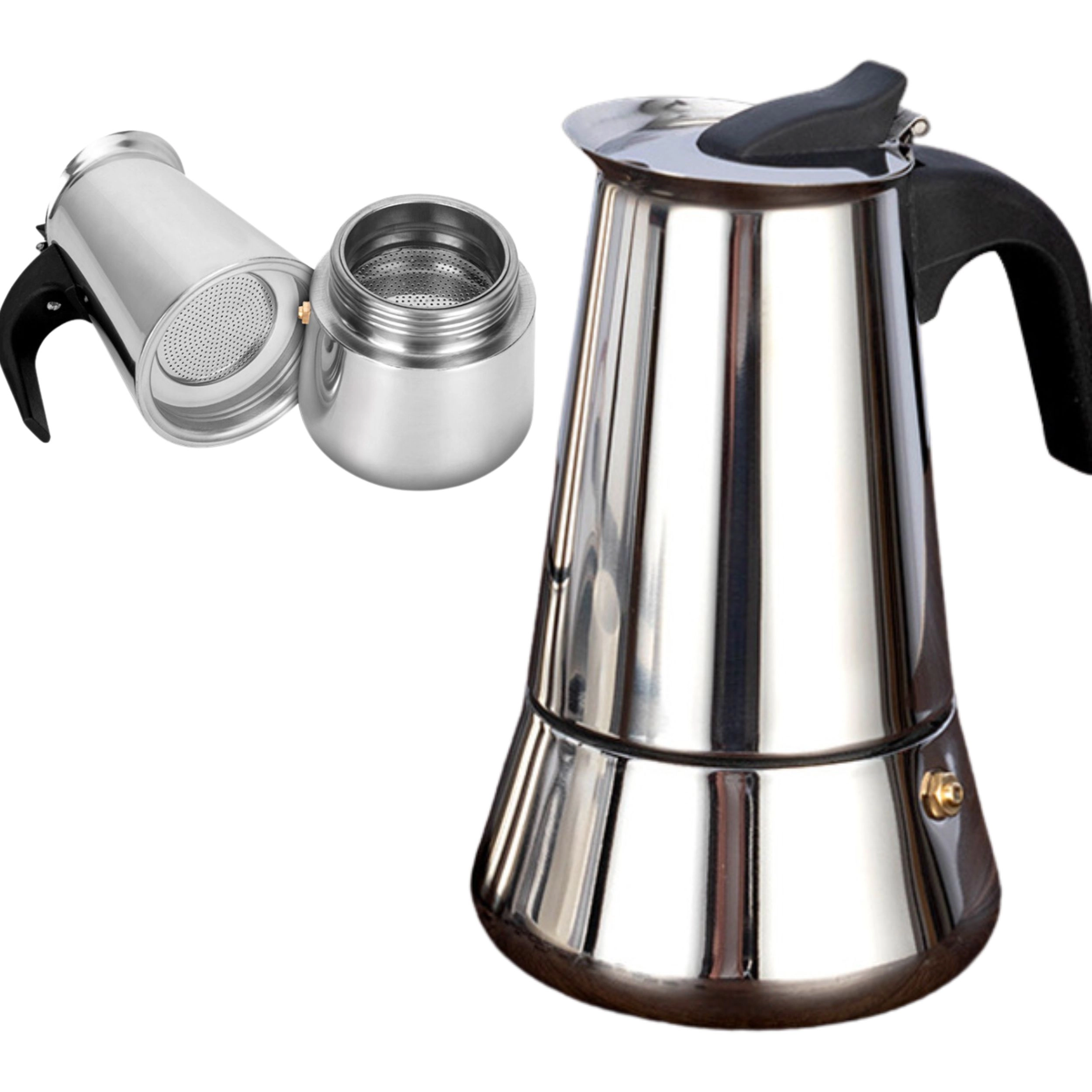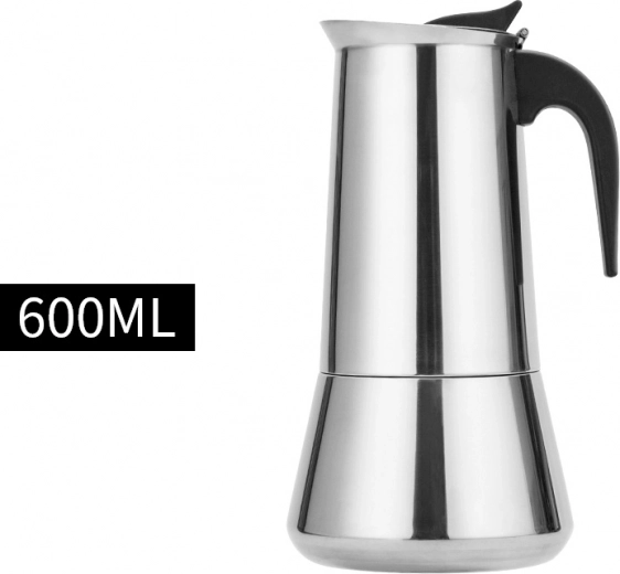 Geniet van authentieke koffie vanuit het comfort van huis met deze elegante mokkakoffiemaker van roestvrij staal met een inhoud van 600 ml. Zet tot 12 kopjes aromatische koffie met een volle smaak, geschikt voor gas en elektrisch, en dankzij het hoogwaardige filter krijg je een drank zonder koffiedik. Gemaakt van duurzaam roestvrij staal, met een ergonomisch handvat en eenvoudig te reinigen – de ideale keuze voor het dagelijkse ritueel en het ontvangen van gasten. Authentieke smaak, capaciteit tot 12 kopjes, roestvrijstalen uitvoering, gebruik op het fornuis, eenvoudig onderhoud.