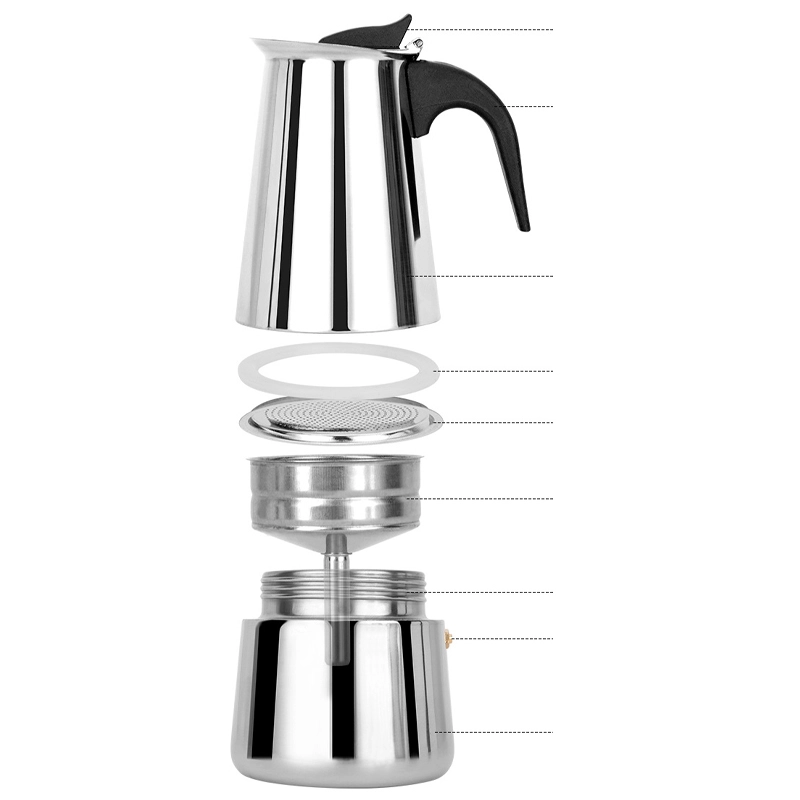 - Metalen filter, afdichting voor een heldere drank zonder koffiedik