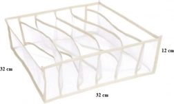 Deze stoffen organizer helpt de ruimte in kast en commode efficiënt te benutten. Dankzij de 6 gescheiden vakken sorteer je eenvoudig ondergoed en accessoires; alles heeft zijn plek en is direct bij de hand. De neutrale witte kleur past in elk interieur.