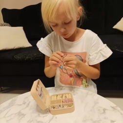 Deze creatieve set is een ideale keuze voor kinderen die dol zijn op creëren en design. Bevat veel kleurrijke hangers in verschillende vormen en kleuren, waardoor er unieke sieraden kunnen worden gemaakt. Alles is veilig opgeborgen in een draagbare koffer met ritssluiting, wat het gemakkelijk maakt om mee te nemen naar school, vrienden of de tuin.