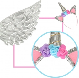 Deze diadeem verandert elk kind in een magische eenhoorn dankzij de elegante zilveren hoorn en decoratieve bloemen.