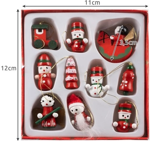 De set bevat 10 verschillende houten kerstversieringen, waaronder een ster, Sint-Nicolaas, bel en andere winterthema's. Ze brengen vreugde en elegantie aan elke boom.