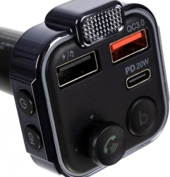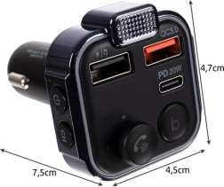 Steek hem in de sigarettenaansteker, kies een vrije FM‑frequentie (87,5–108 MHz) en koppel met je telefoon. Werkt in auto's met een boordnet van zowel 12 als 24 V.
