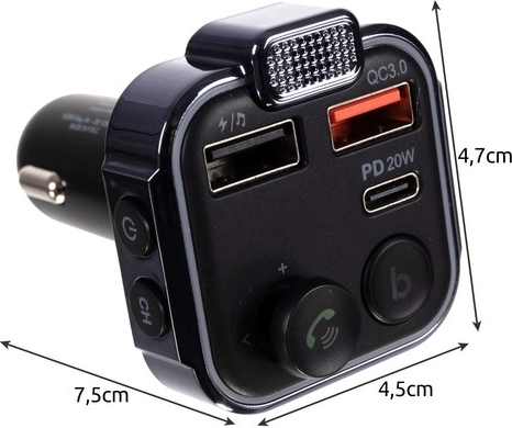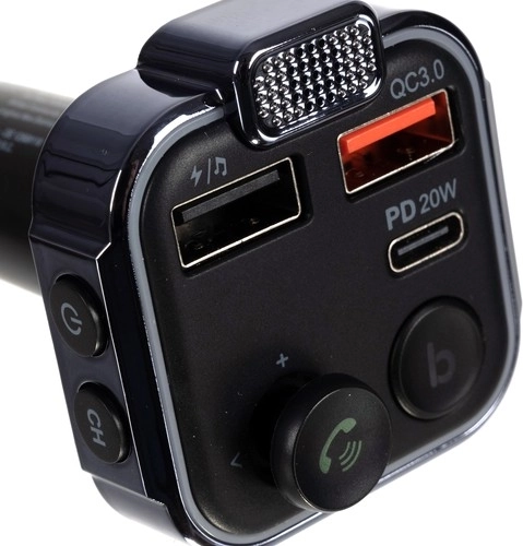 Praktische Bluetooth FM‑zender met autolader XTROBB verandert elke autoradio in een modern multimediacentrum. Biedt Bluetooth 5.0, handsfree bellen, twee USB‑poorten en USB‑C met intelligent snel laden, LED‑display en werkt in voertuigen van 12–24 V. Compatibel met iOS en Android en ondersteunt afspelen vanaf een USB‑stick.