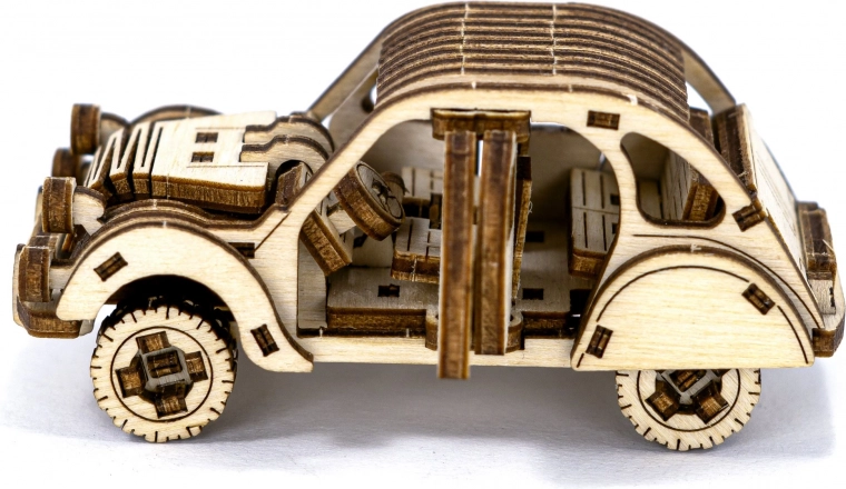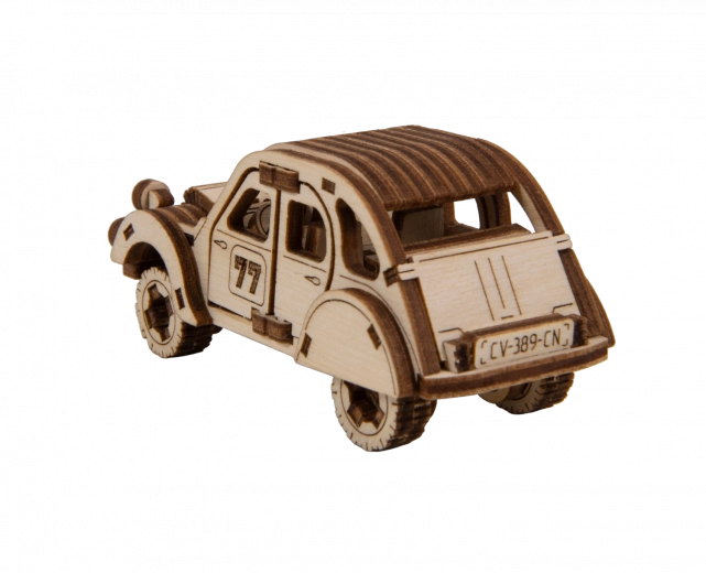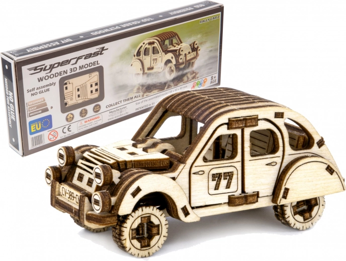 Dit model van een rallyauto biedt een aantrekkelijke combinatie van creatief plezier en elegante interieurdecoratie. De onderdelen van eersteklas berkenmultiplex klikken precies in elkaar – zonder lijm en schroeven – met als resultaat een indrukwekkende retroauto met tal van fijne details.