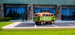 Authentieke uitsparingen voor ramen, deuren en wielen geven de minibus een unieke vintage look. Perfect als decoratie en als verzamelobject.