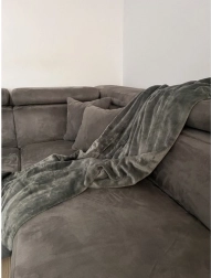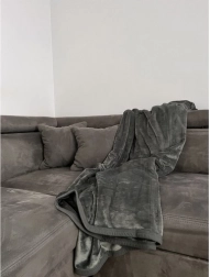 Stijlvolle grijze plaid van zachte microvezel die comfort, warmte en zachtheid biedt in elk seizoen. Dankzij de luchtige structuur houdt hij warmte vast, is aangenaam aanvoelend en toch licht. De neutrale kleur past gemakkelijk in elk interieur en dient ook als decoratieve sprei voor bed of bank.