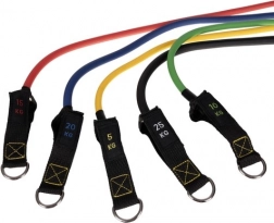 Vijf kleurgecodeerde banden dekken het volledige bereik aan belasting. Door meerdere banden tegelijk te combineren, pas je de weerstand eenvoudig aan voor zowel het boven- als onderlichaam.