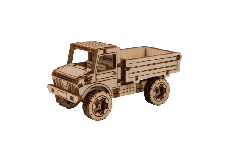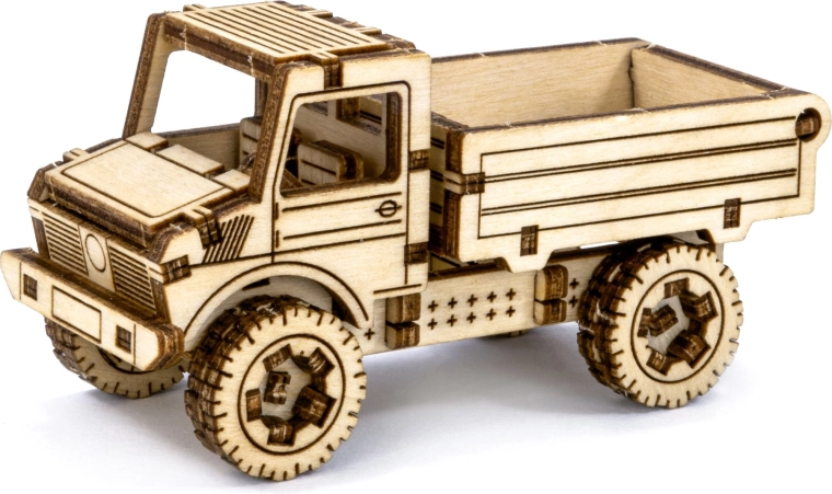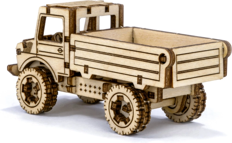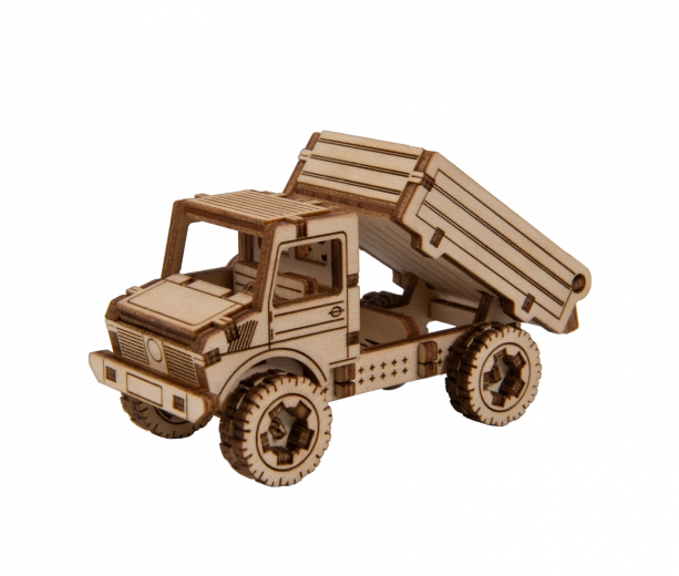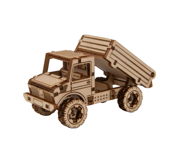 De houten 3D-puzzel WOODEN CITY Superfast vrachtauto is een ideale keuze voor liefhebbers van modellen, knutselen en techniek. De montage is eenvoudig en duurt ongeveer 1 uur, waarbij de afzonderlijke onderdelen van kwalitatief multiplex precies in elkaar passen en zonder lijm stevig blijven zitten. Het resultaat is een functioneel mechanisch model met een soepele loop en een gedetailleerde uitstraling.