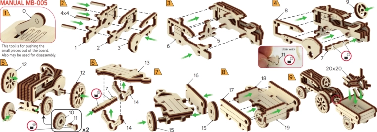 De bouw duurt ongeveer 30 minuten en dankzij de duidelijke instructies is het ook voor complete beginners goed te doen. Het voltooide model van natuurlijke berkenmultiplex blinkt uit door rijke details, bewegende wielen en een warme houten look die in elk interieur past – van kinderkamer tot kantoor.