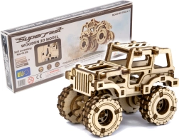 Geniet van het bouwplezier met de houten 3D-puzzel Monster Truck Superfast. Dankzij de precieze lasersneden passen de onderdelen perfect in elkaar en krijg je een stijlvol model met functioneel draaiende wielen – ideaal om neer te zetten of voor korte ritjes op tafel.