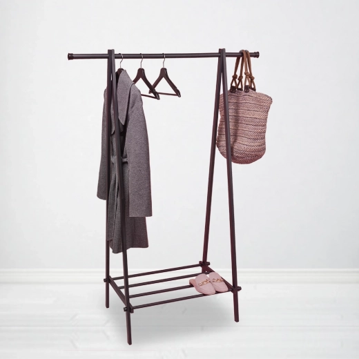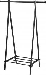 De bovenste kledingroede biedt plaats aan jassen, mantels en overhemden, terwijl de onderste plank ruimte biedt voor schoenen, boxen of accessoires. Robuust, poedergecoat staal zorgt voor een lange levensduur en eenvoudig onderhoud.