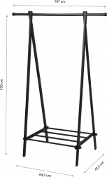 Een hoogte van 150 cm en een roedebreedte van 107 cm bieden voldoende ruimte voor kleding, terwijl de compacte basis vloeroppervlak bespaart.