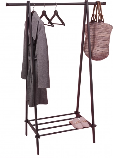 Praktisch metalen kledingrek met een bovenste roede voor hangers en een onderste legplank voor schoenen en accessoires helpt je orde te houden in de hal, slaapkamer en inloopkast. Dankzij de duurzame stalen constructie met poedercoating is het stabiel, gemakkelijk schoon te maken en past het perfect in een modern interieur.
