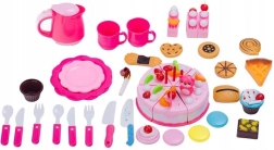 De taart en desserts zijn verdeeld in stukken die met klittenband zijn verbonden. Kinderen kunnen ze eenvoudig “afsnijden” met het bijgeleverde mes en weer samenvoegen – veilig en leuk.