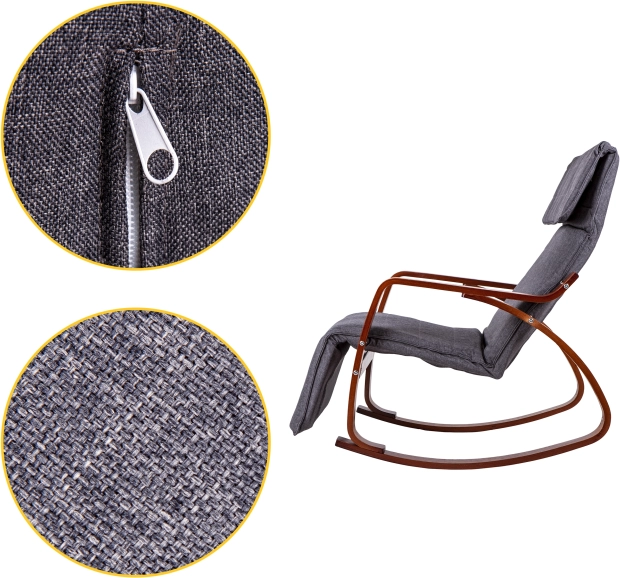 De afneembare hoes met rits is gemaakt van ademend katoen en kan in de wasmachine worden gewassen, wat het onderhoud vergemakkelijkt. De zitting en hoofdsteun zijn gevuld met zacht schuim, dat de stoel perfect aan jouw lichaam aanpast.