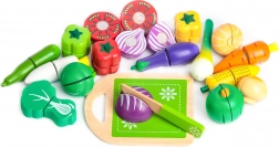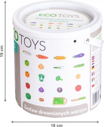 De set is een geweldige aanvulling voor kinderen met speelgoedkeukens, marktkramen en winkels. Met deze houten producten wordt het spel nog creatiever en brengt zeker veel plezier. Alle elementen zijn gemaakt van hout en bedekt met een kindveilig verf. De groente bestaat uit twee helften verbonden door klittenband, wat kinderen in staat stelt te zien hoe het eruitziet in een doorsnede. Ook inbegrepen zijn een houten plank en mes.