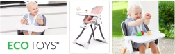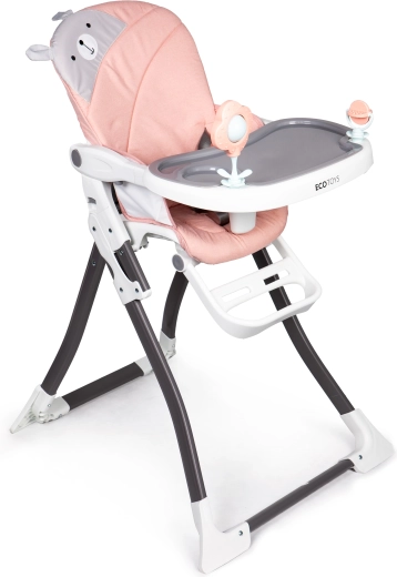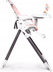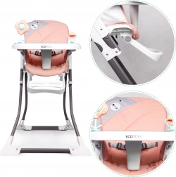 De verhoogde randen van het blad zorgen ervoor dat er niets op de vloer wordt gemorst. Bovendien bestaat het blad uit twee delen, waarvan het eerste voor eten en het tweede voor spelen dient.