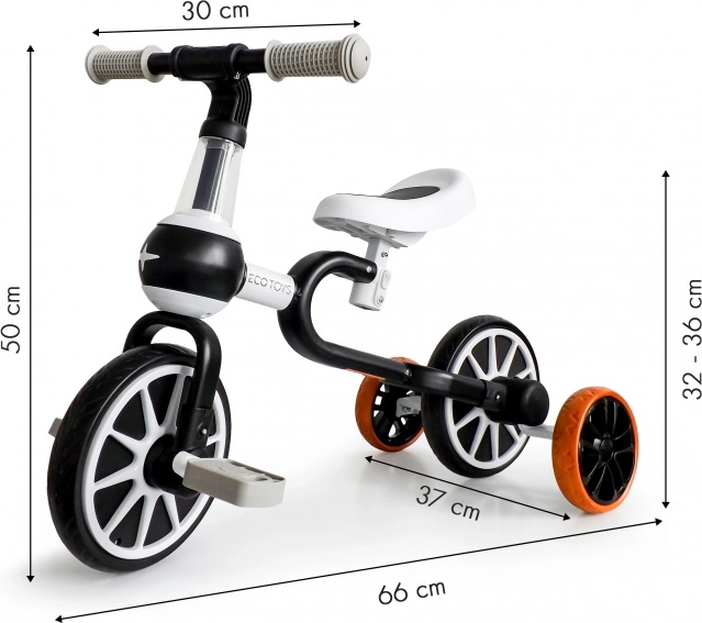 De 4-in-1 loopfiets en fiets van ECOTOYS is ontworpen met de behoeften van de allerkleinsten in gedachten. Hij biedt vier verschillende configuraties, waardoor hij geschikt is voor verschillende fasen van het leren fietsen. Hij maakt de overgang mogelijk van een loopfiets met gemonteerde zijwieltjes tot een standaard fiets zonder steunwielen.