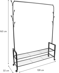 De staande kapstok van ModernHome is een uitstekende oplossing voor iedereen met een gebrek aan ruimte om kleding op te hangen zonder een kast nodig te hebben. Dankzij de duurzame wieltjes is hij gemakkelijk te verplaatsen zonder veel kracht te hoeven gebruiken.