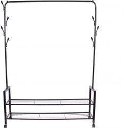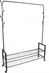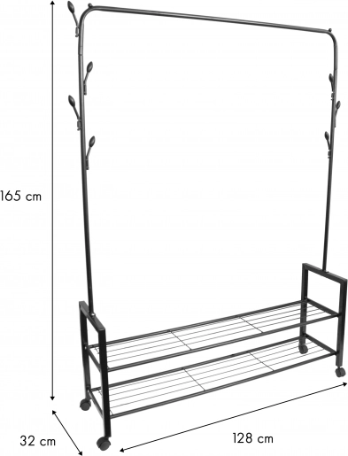 De kapstok heeft een duurzame, stabiele metalen constructie met poedercoating. De decoratieve zijhaken bieden extra plek voor het ophangen van een tas, sjaals of een hoed. De ruime legplanken zijn ideaal voor accessoires en schoenen.