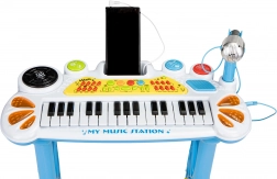 Het muzikale station voor kinderen verandert de kamer in een klein podium. De piano op een stabiele standaard met een krukje op comfortabele hoogte stimuleert de juiste zithouding en langer speelplezier. Dankzij de ingebouwde telefoonhouder is het afspelen van favoriete liedjes eenvoudig en worden kinderen gemotiveerd om ritmes en melodieën te ontdekken.