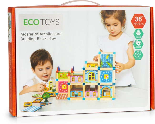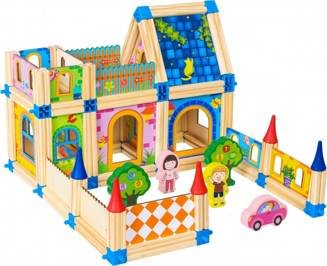 Deze houten bouwset neemt je kind mee naar een wereld van oneindig bouwen en creëren van nieuwe structuren. De set met aantrekkelijke kleuren en een grote hoeveelheid blokken zorgt voor uren speelplezier.