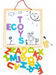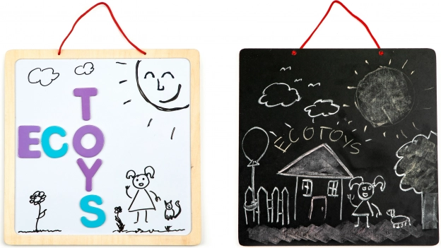 Het 3-in-1 educatieve magnetische bord van ECOTOYS is bedoeld voor kinderen vanaf 3 jaar. De combinatie van een traditioneel zwart krijtbord en een wit bord voor stiften maakt het mogelijk om te tekenen en woorden te leren met behulp van magnetische letters. De robuuste houten constructie garandeert duurzaamheid en veiligheid tijdens het spelen.