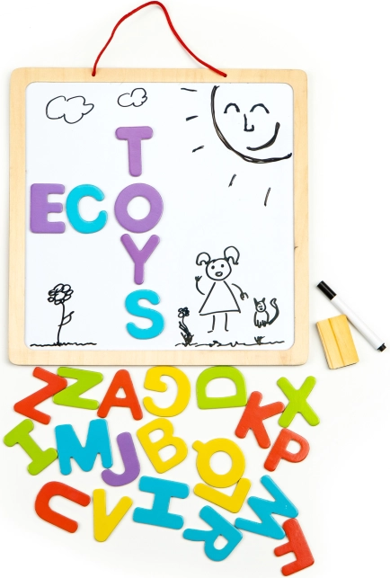 Educatief magnetisch bord ECOTOYS is het perfecte hulpmiddel voor de ontwikkeling van kinderen. Het biedt ruime creatieve mogelijkheden dankzij het gebruik van krijt, stiften of magnetische letters. Het bord is geschikt voor kinderen ouder dan 3 jaar en de veilige houten constructie zorgt voor langdurig en veilig speelplezier.