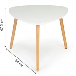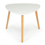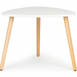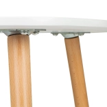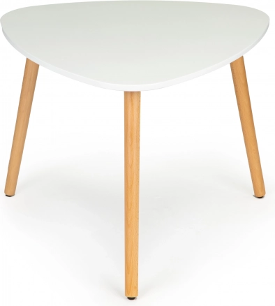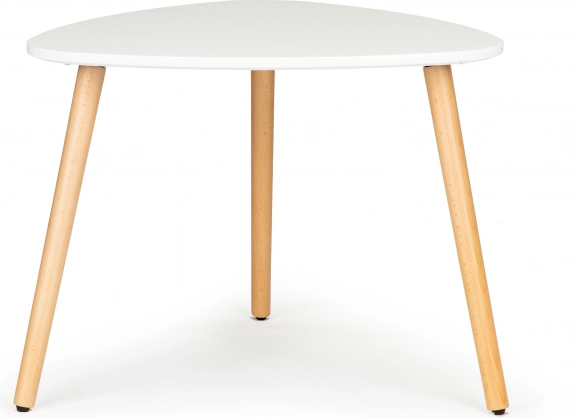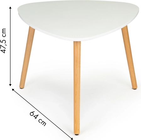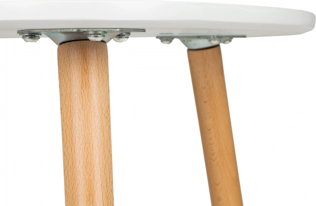 Het tafelblad is gemaakt van gelakt MDF, wat het krasbestendig maakt, zelfs bij intensief gebruik. Drie robuuste poten van beukenhout zorgen voor stabiliteit en een beschermende laklaag beschermt ze tegen schade.