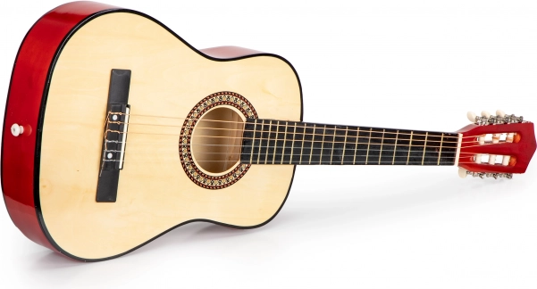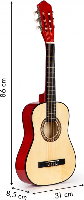 Deze kindergitaar van ECOTOYS is ontworpen om zoveel mogelijk op een echt instrument te lijken – van de stemmechanieken tot de brug en de toets met 18 frets. De combinatie van metalen en nylon snaren maakt het spelen voor beginners makkelijker en zorgt voor een gebalanceerde, aangename klank.